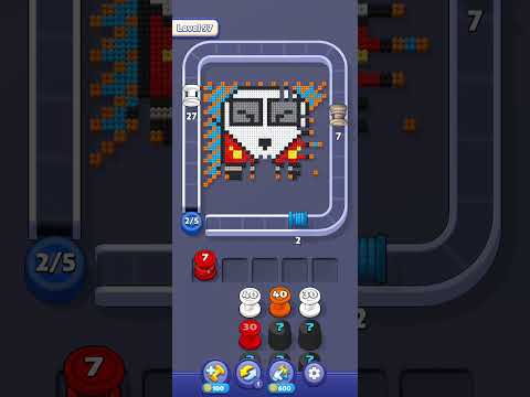 - Finish the gray eye pieces, the red-orange cheeks, and the last striped corners only after the backdrop is visibly shorter.